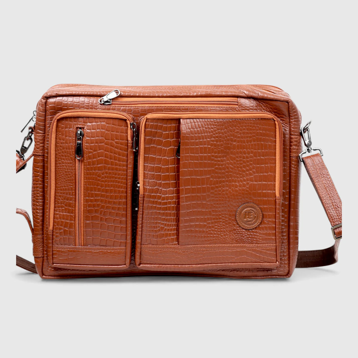 Crocodore Vintage Leather Multi-Pocket Laptop Bag – Tan Colour