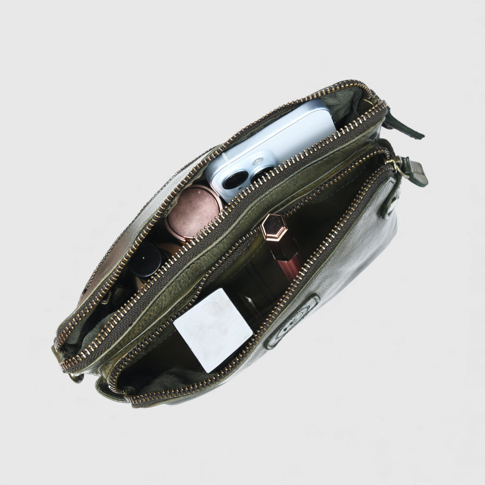 Classic Cognac Leather Women's Handbag - Olive Colour