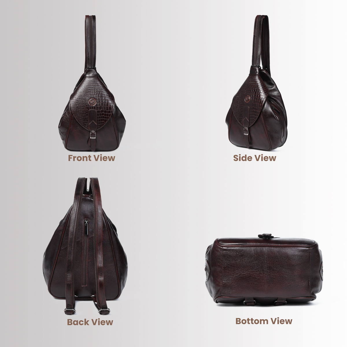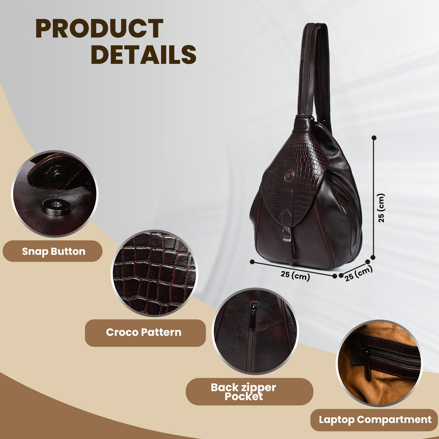 Maroon Croco Leather Shoulder Bag | Convertible Leather Backpack for Women – Hestern