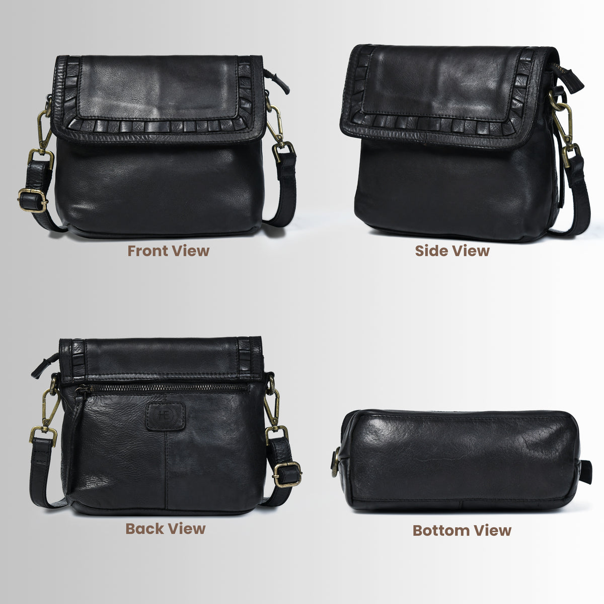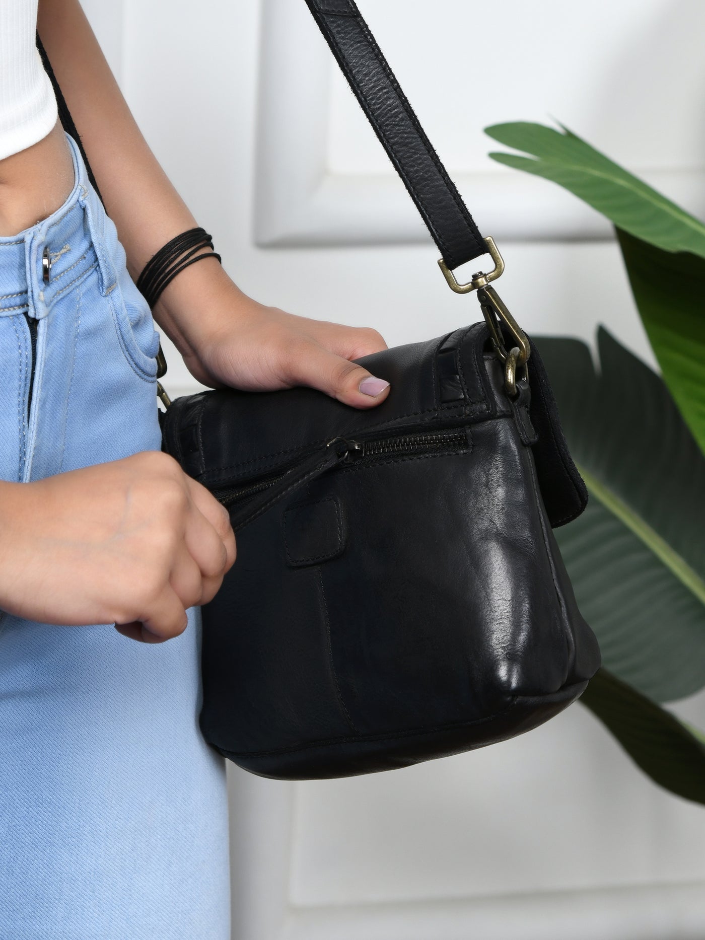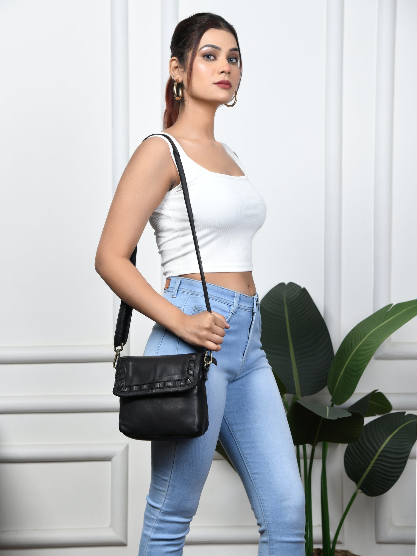 Verdant Crossbody Women's Leather Handbag - Black Colour