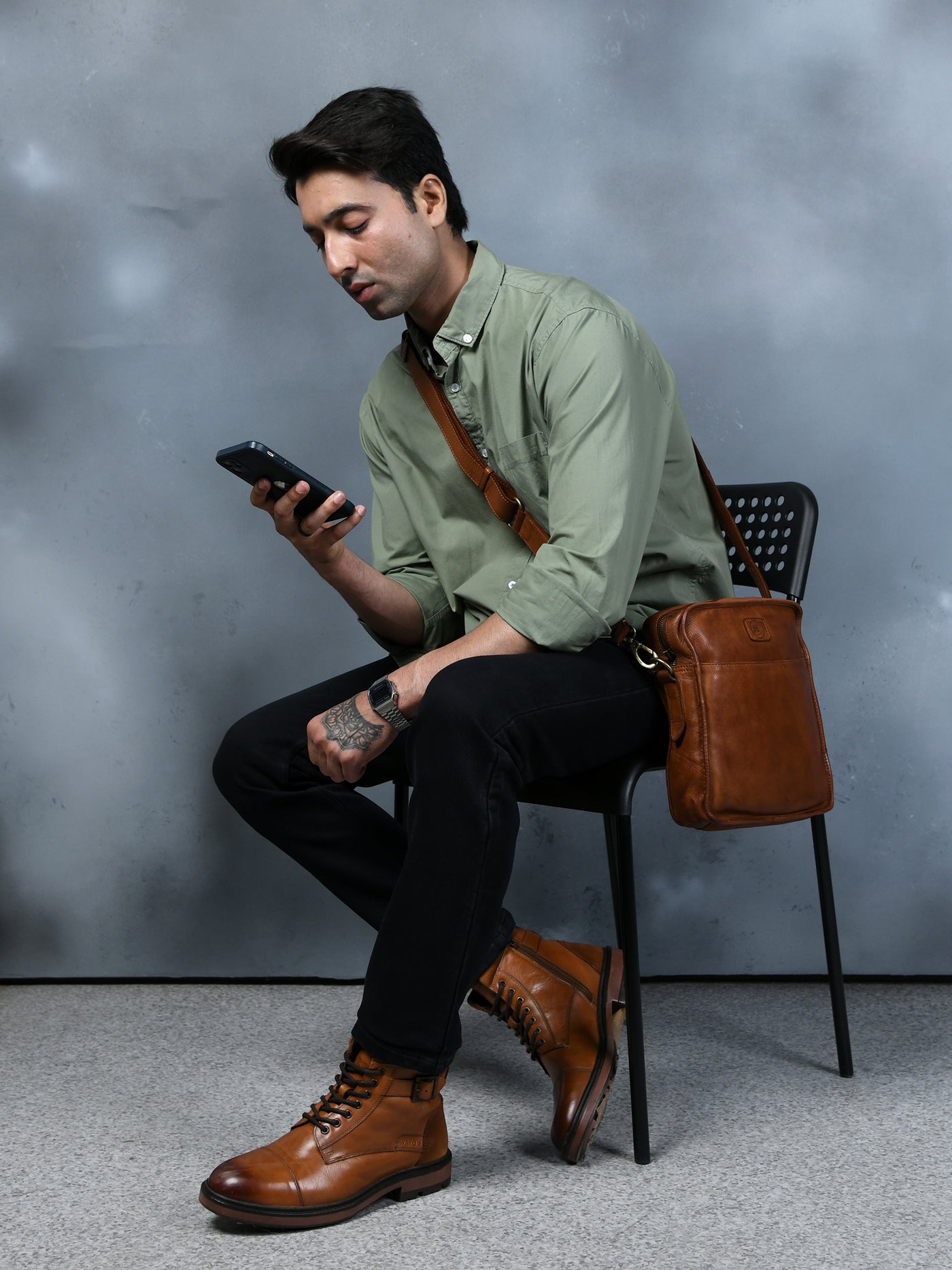 Verdant Trail Leather Sling Bag | Crossbody Bag for Men – Hestern