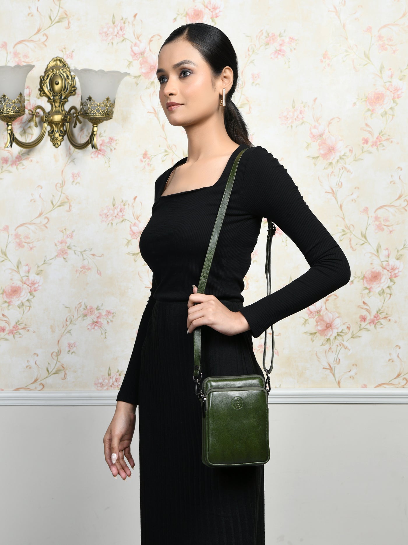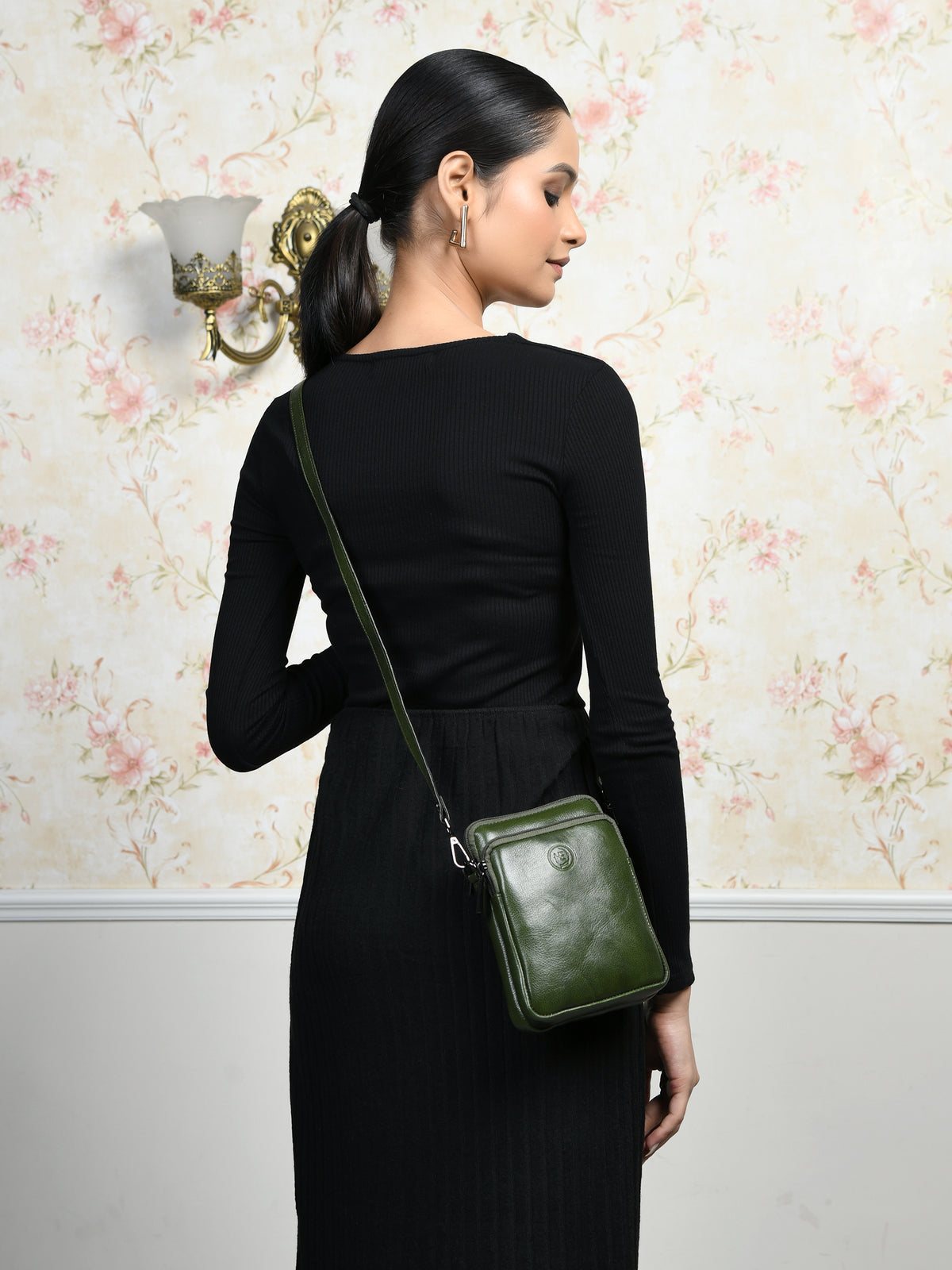 AmberStride Leather Sling Bag | Full-Grain Leather Crossbody | Olive – Hestern