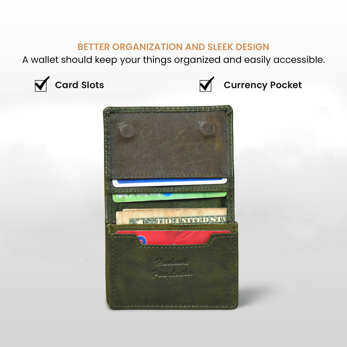 Classic Leather Card Wallet | Handcrafted Minimalist Pocket Wallet | Olive Colour – Hestern