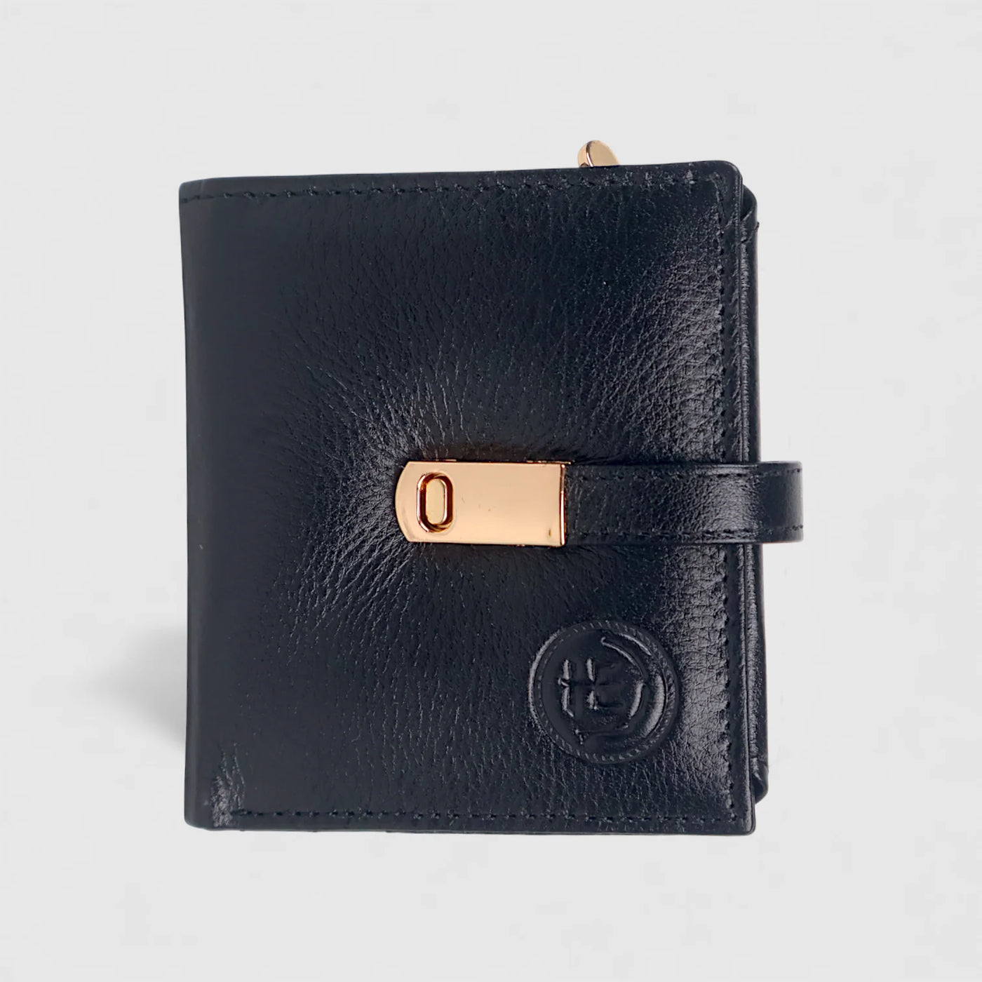 The trifold construction allows for maximum storage while maintaining a compact, pocket-friendly size. Inside, you'll find multiple card slots, a full-length currency compartment for banknotes, and organized sections for everyday essentials. A sleek and secure metal clasp closure adds both style and safety, ensuring your belongings stay in place while giving the wallet a polished aesthetic.