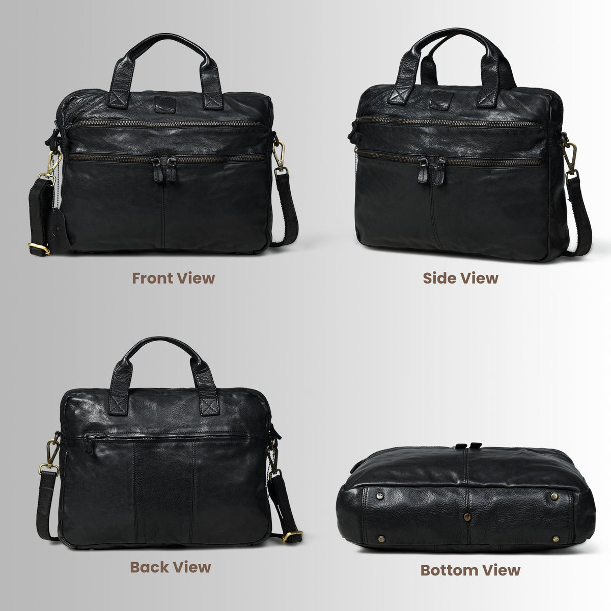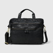 The bag features thoughtfully organized compartments, including a padded sleeve perfect for securing laptops up to 15.6 inches, and additional zippered pockets ensuring easy access and efficient organization of your documents, smartphone, and accessories. The antique brass-finish hardware, reinforced handles, and adjustable shoulder strap ensure durability and comfort, making it a reliable companion from office meetings to international travel.