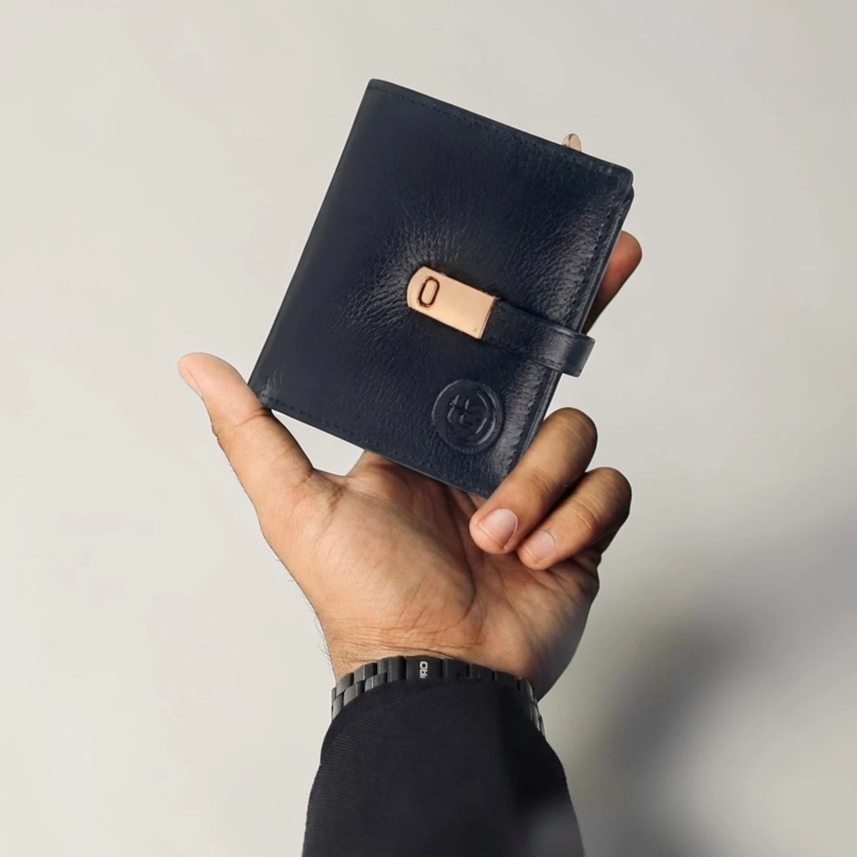 The trifold construction allows for maximum storage while maintaining a compact, pocket-friendly size. Inside, you'll find multiple card slots, a full-length currency compartment for banknotes, and organized sections for everyday essentials. A sleek and secure metal clasp closure adds both style and safety, ensuring your belongings stay in place while giving the wallet a polished aesthetic.