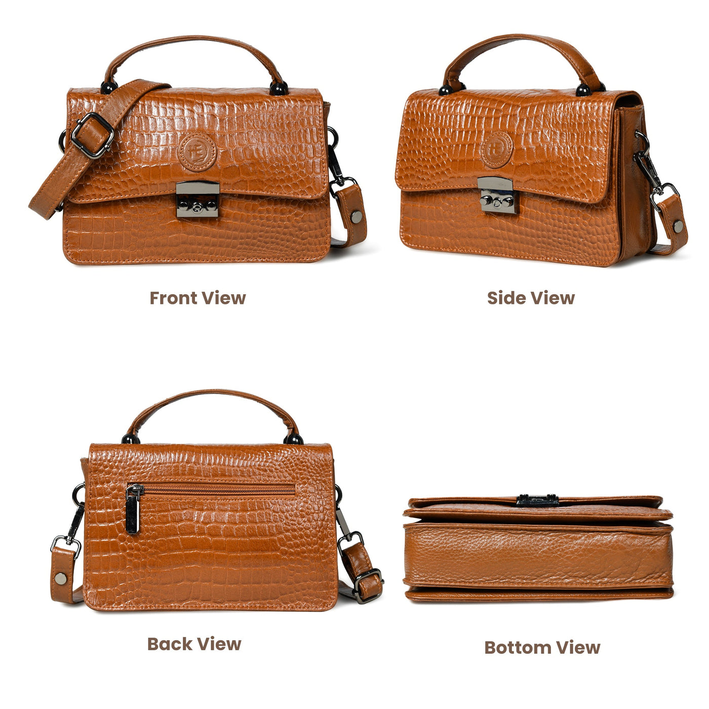 Imperial Croc Luxe Satchel Bag - Tan Colour