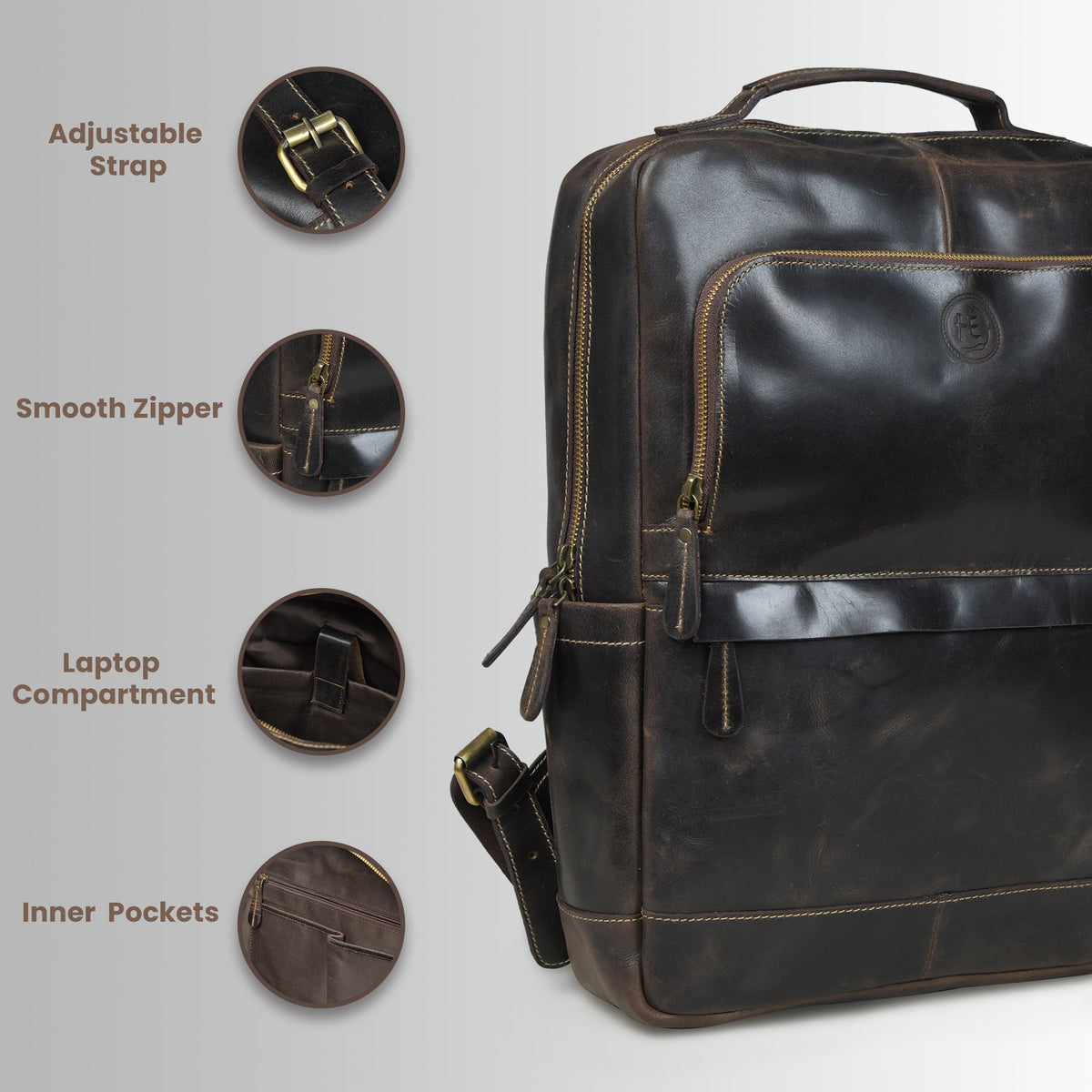 Alpine Vintage Leather Laptop Backpack - Espresso Brown