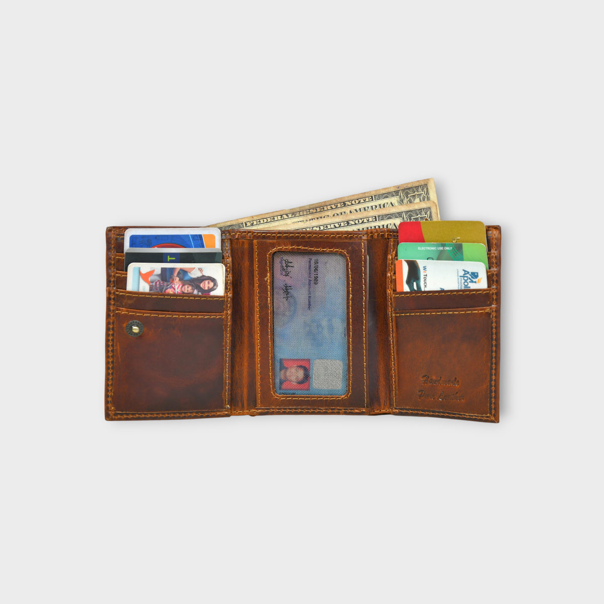 Midnight Luxe Vertical Bifold Wallet | Premium Black Leather RFID Wallet | Tan Colour – Hestern