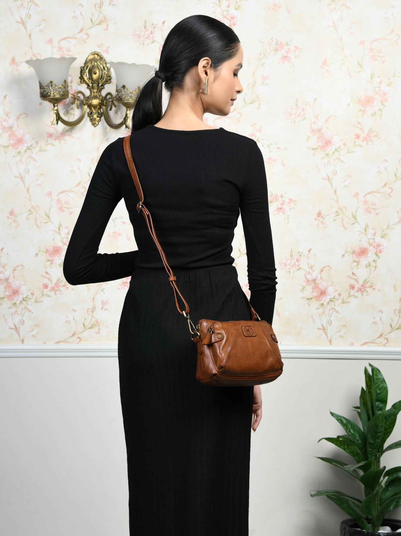 Classic Cognac Leather Women's Handbag | Genuine Leather Crossbody Bag | tan – Hestern