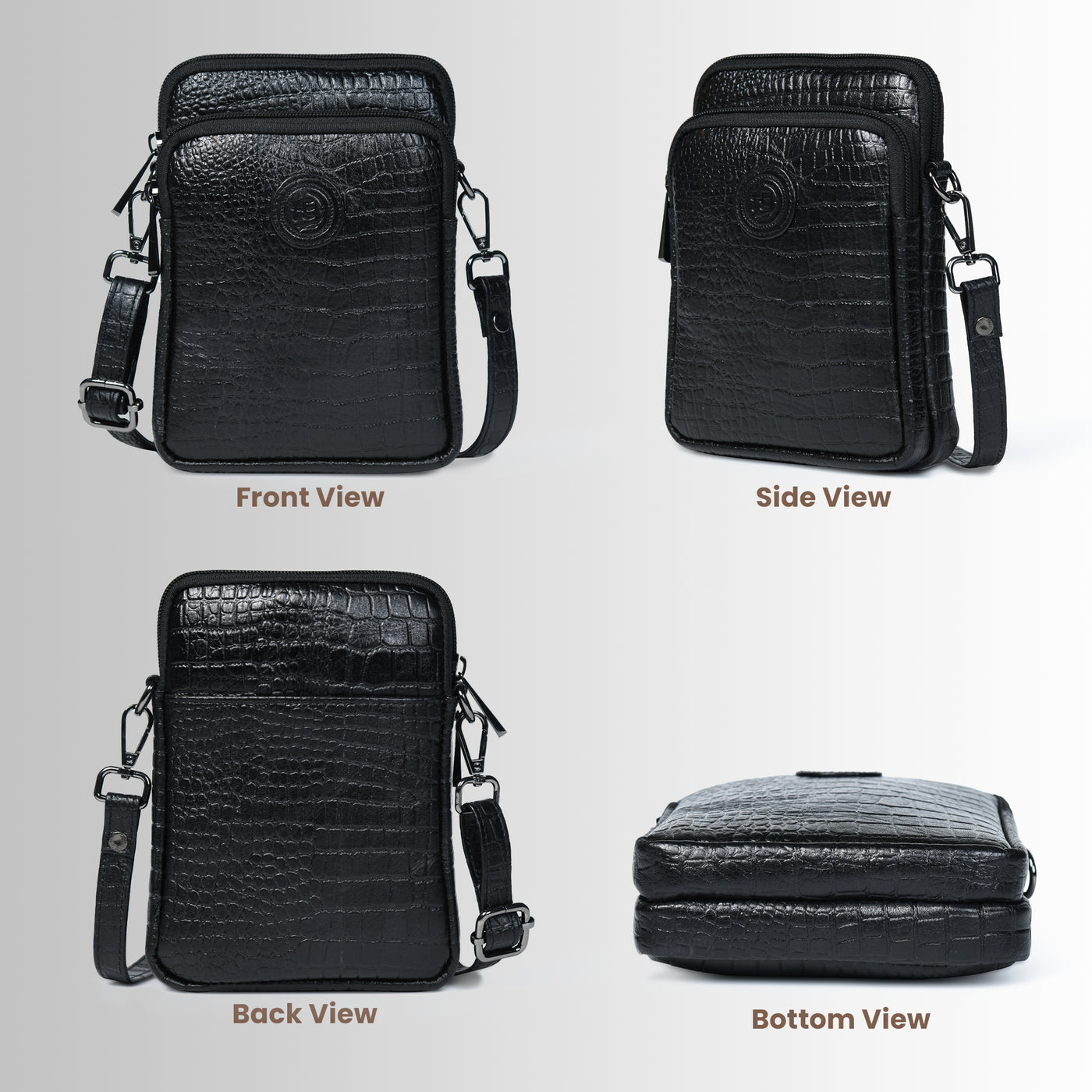 The Emerald Luxe Croc Satchel is a refined statement piece for those who appreciate timeless elegance and superior craftsmanship. Designed with a structured silhouette, this bag is meticulously crafted from premium full-grain leather with an embossed crocodile texture, exuding an air of sophistication. The rich leather develops a stunning patina over time, enhancing its luxurious appeal.