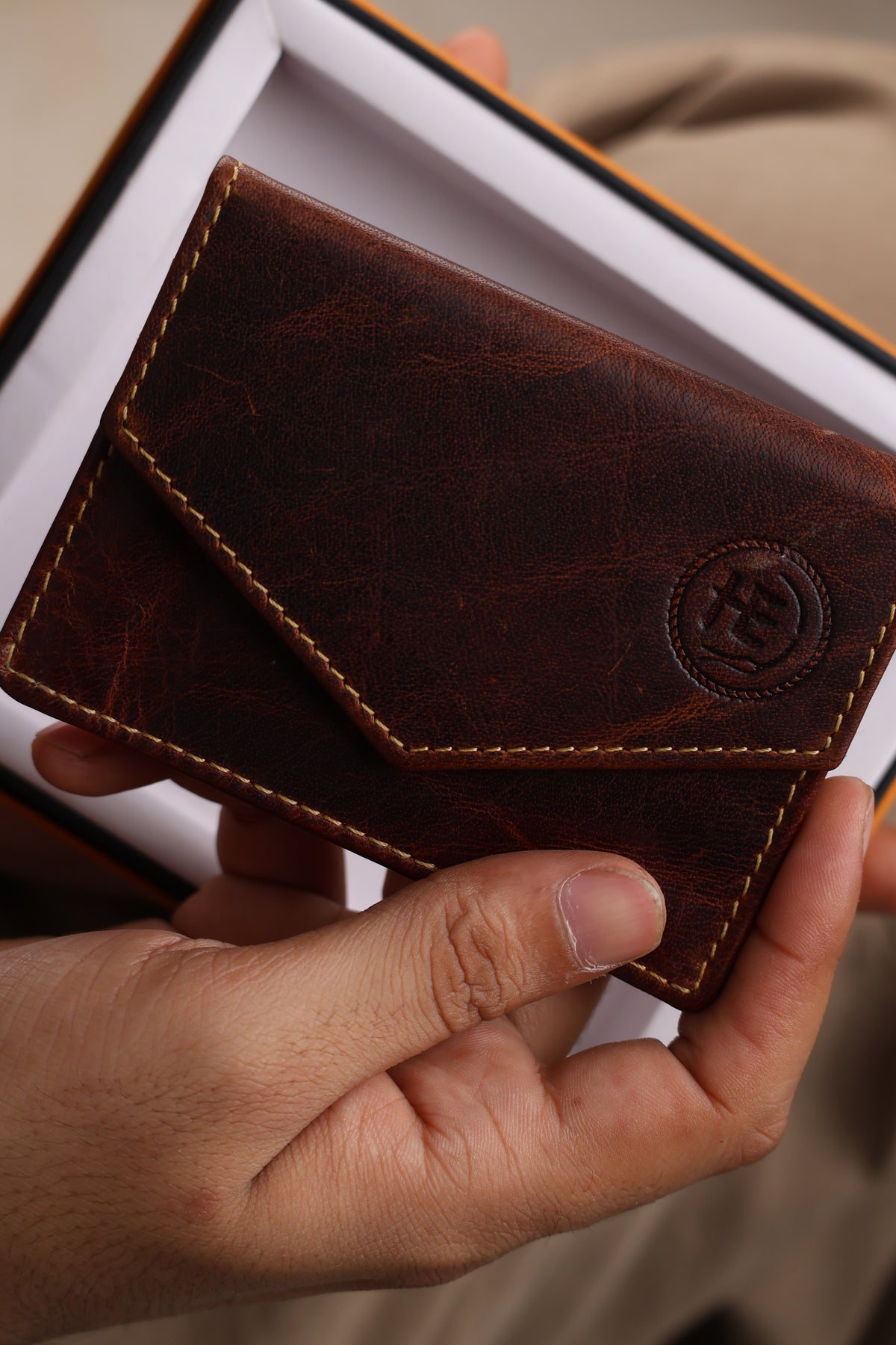 Emerald Regency Compact Vintage Leather Card Wallet - Maroon Colour