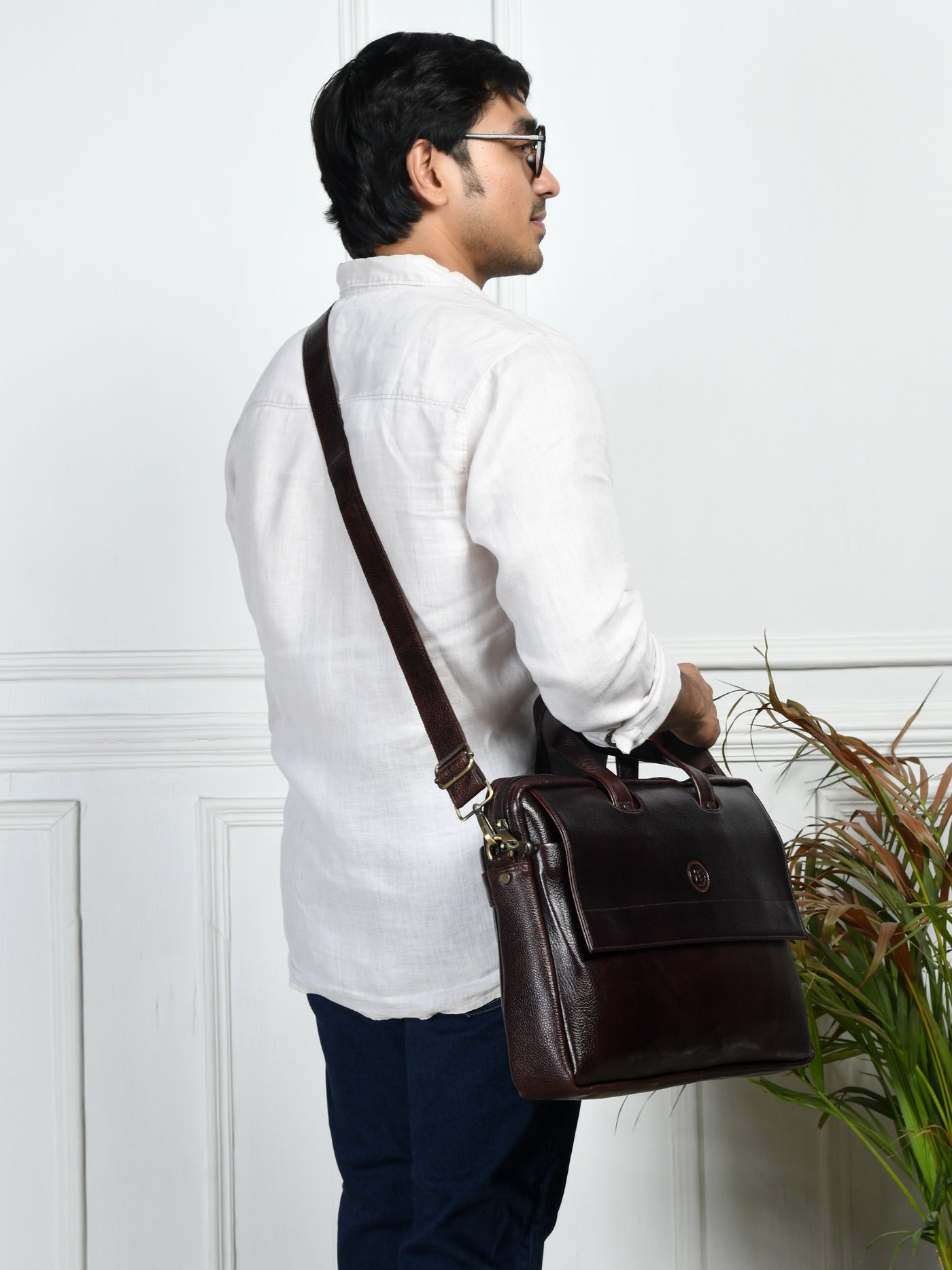 Executive Edge Leather Laptop Briefcase | Premium Black Leather Office Bag | Tan Colour – Hestern