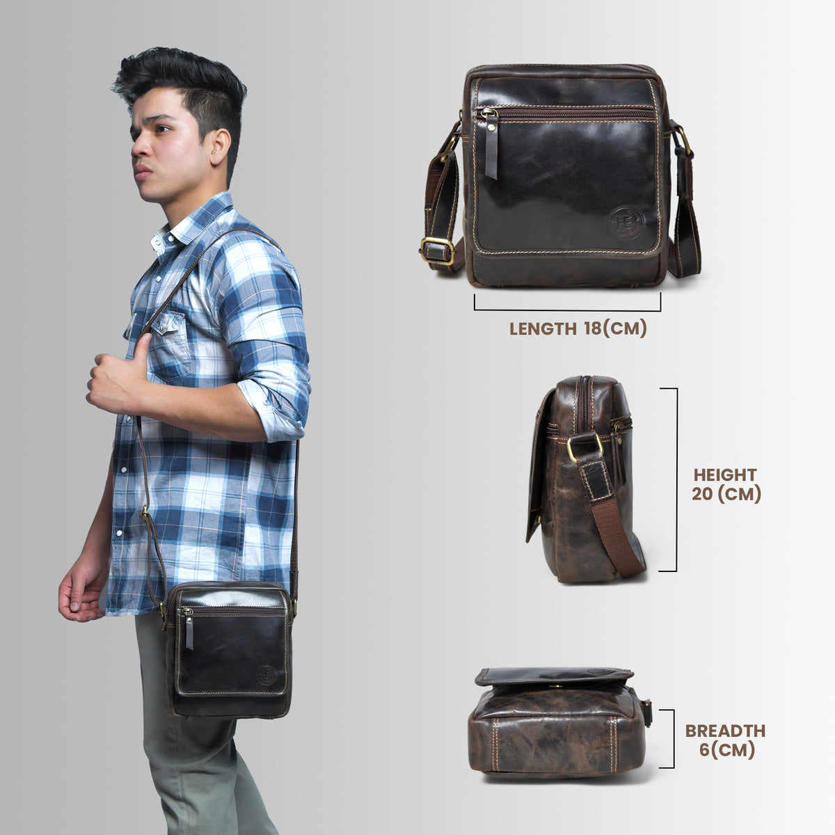 Explorer Vintage Leather Sling Bag | Full-Grain Buffalo Leather Crossbody | Brown Colour – Hestern