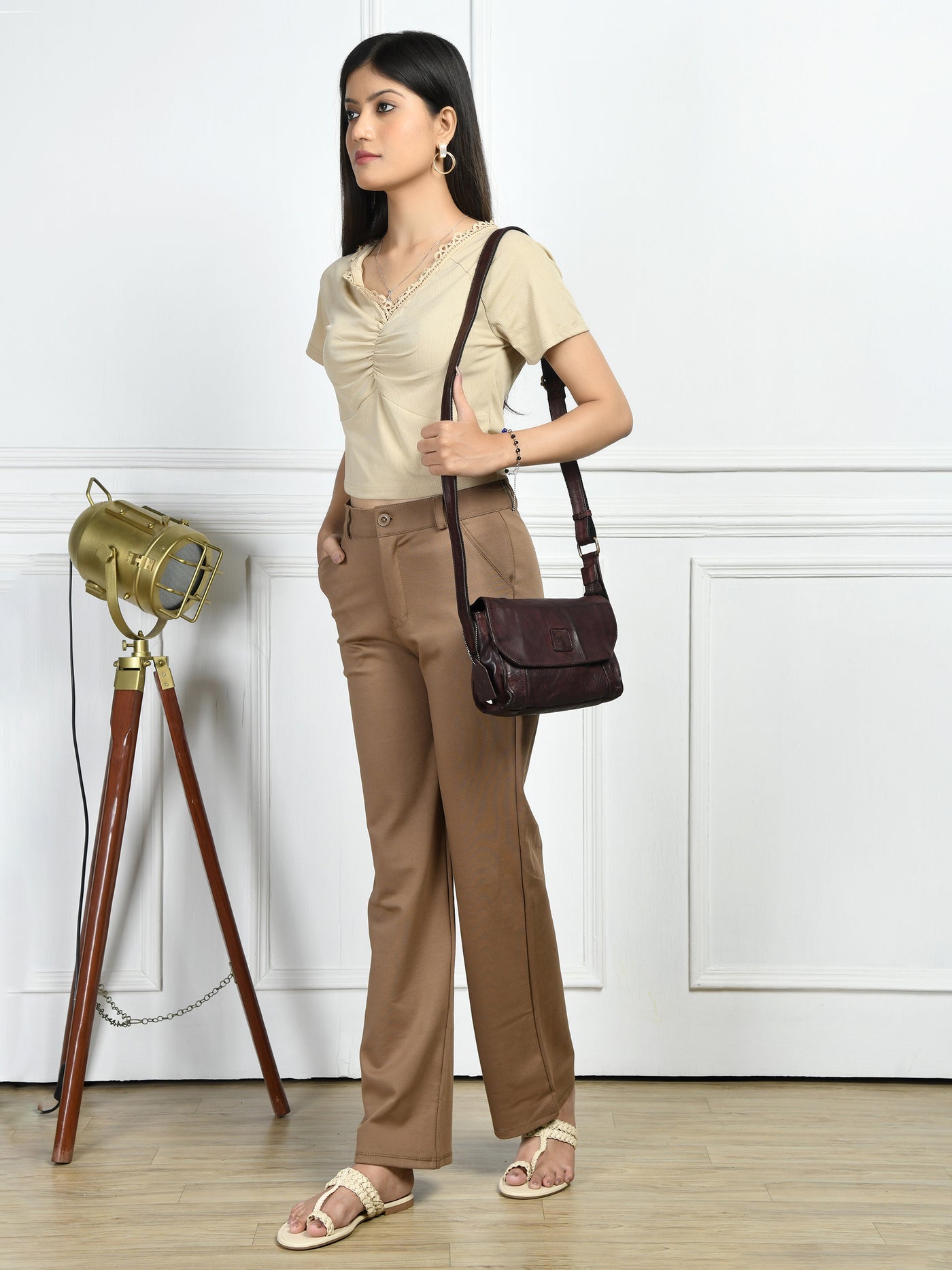 Heritage Leather Crossbody Bag - Maroon Colour