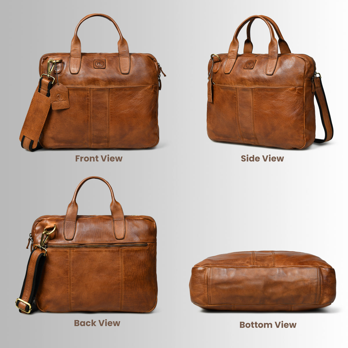 Voyager Premium Leather Laptop Bag | Full-Grain Buffalo Leather Office Bag | Brown Colour – Hestern